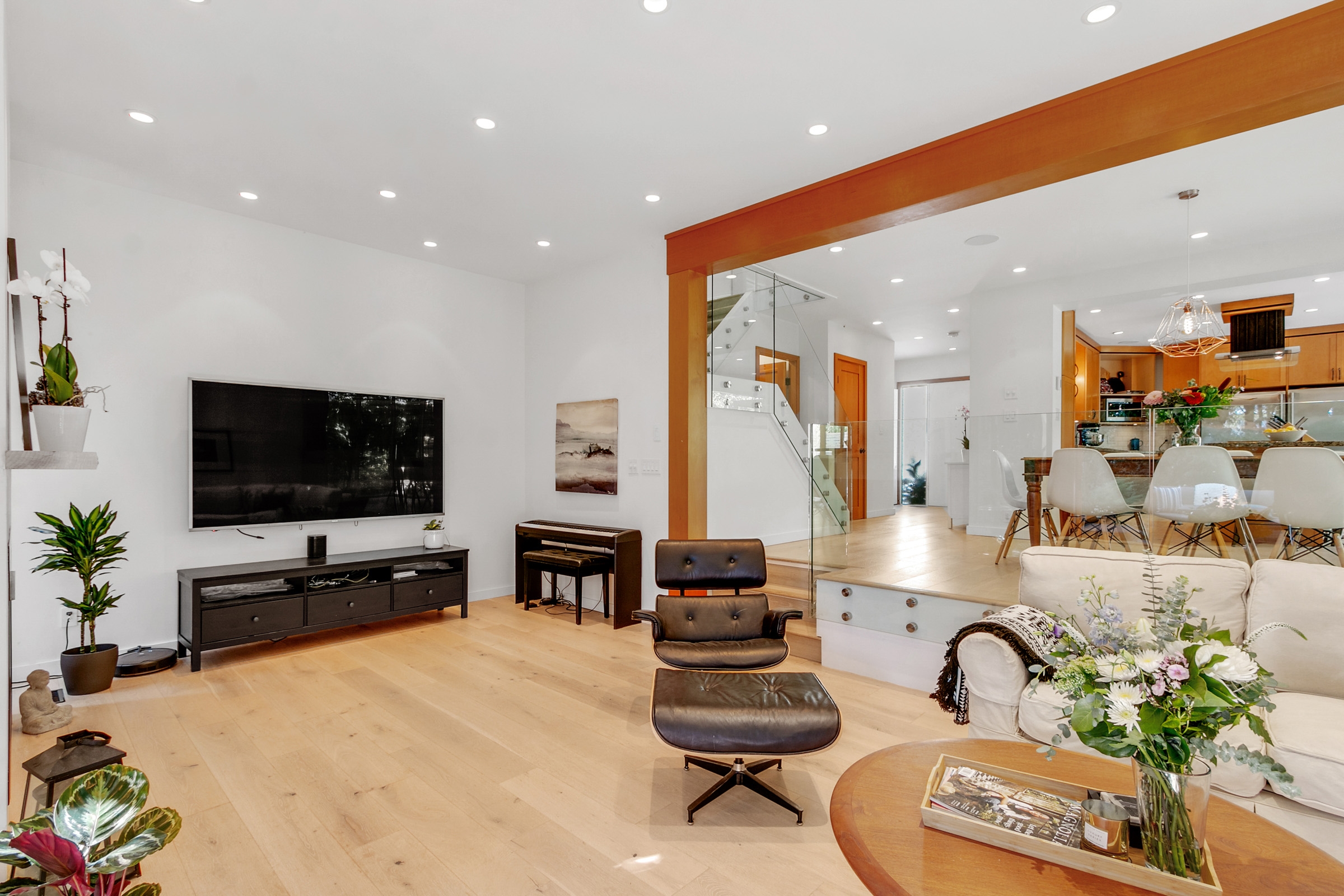With Westcoast inspired finishing's and entertainment in mind this home is beyond compare. An absolutely spectacular corner unit with extraordinary privacy. Large and open planned with easy and inviting access to the outdoor patios this home offers uncommon space, and beautiful finishes. The kitchen is a chefs dream with a commercial styled cooktop and oven, along with an oversized fridge and freezer! The master suite is fit for a King! along with a fireplace, expansive walk-in-closet and beautiful ensuite boasting spa inspired shower and separate tub. The lower floor has even more space with a recreation room, bedroom and another bath!! All this in a central location, close to hiking and biking trails, transportation, and minutes to downtown via the Second Narrows Bridge! Very Special!
