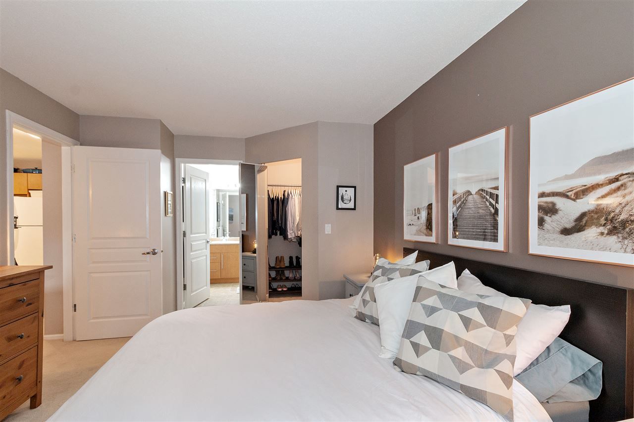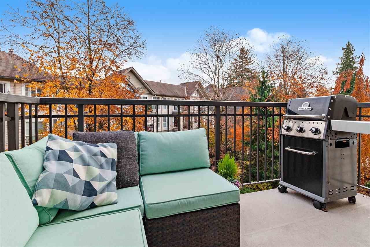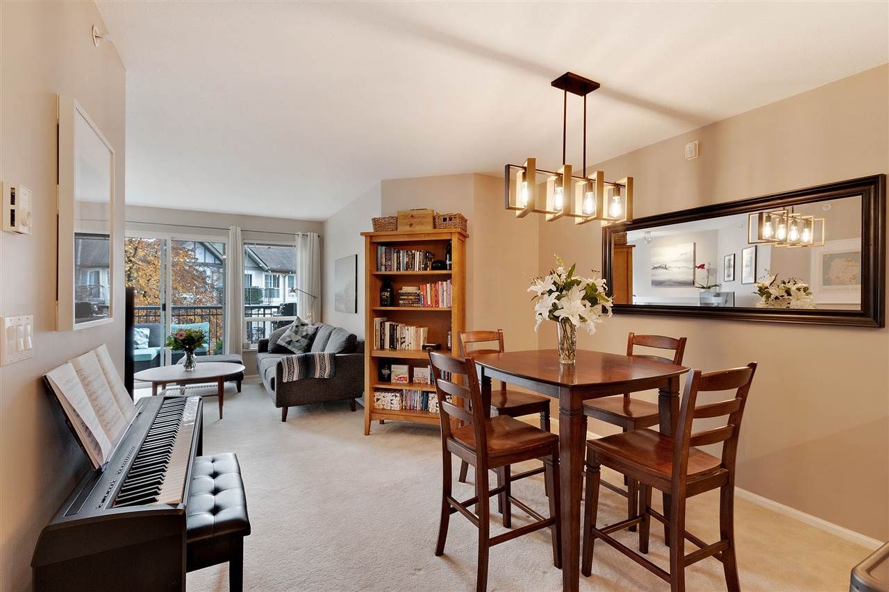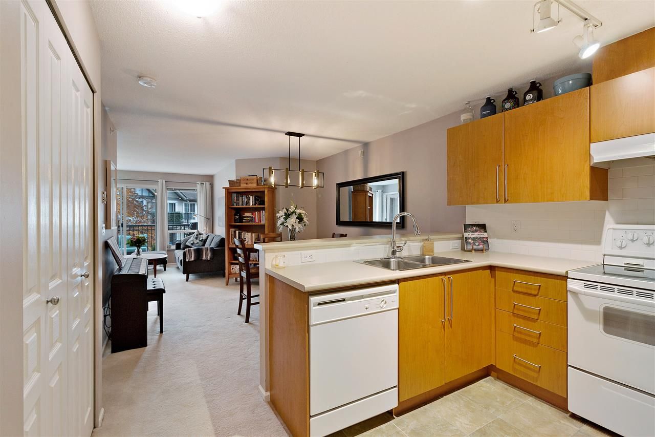 TOP FLOOR! This 1 bedroom + DEN, has a treed outlook and spacious open floorplan. The comfortably elegant environment, with gas fireplace, is a welcoming spot to call home, both inside and out! Enjoy the outdoor deck, where BBQs (gas/elec.) are accepted + it's east exposure is sundrenched in the mornings and cool in the evenings. Meticulously maintained, this home is situated at the end of the hall, which offers a quiet setting, and stairs to the outdoors are just steps away! Highgate is a well respected, proactive strata. The pride of ownership shows in all the common areas. This walkable location has access to shopping, transit, library, recreation and the many neighbourhood parks and trails. Best of all, Pets are Welcome!